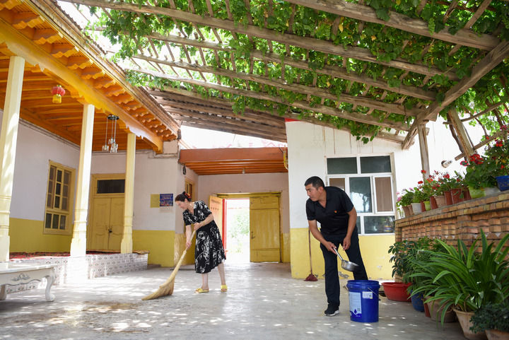 喀什地区疏附县阿亚格曼干村,宽阔洁净的柏油路笔直伸展,干净整洁的农家院错落排开……