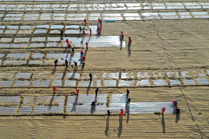 如今,一抹抹绿色向沙漠延伸,牧场上的牛羊点缀在连天碧草间……一幅大美新疆的生态画卷徐徐铺展。