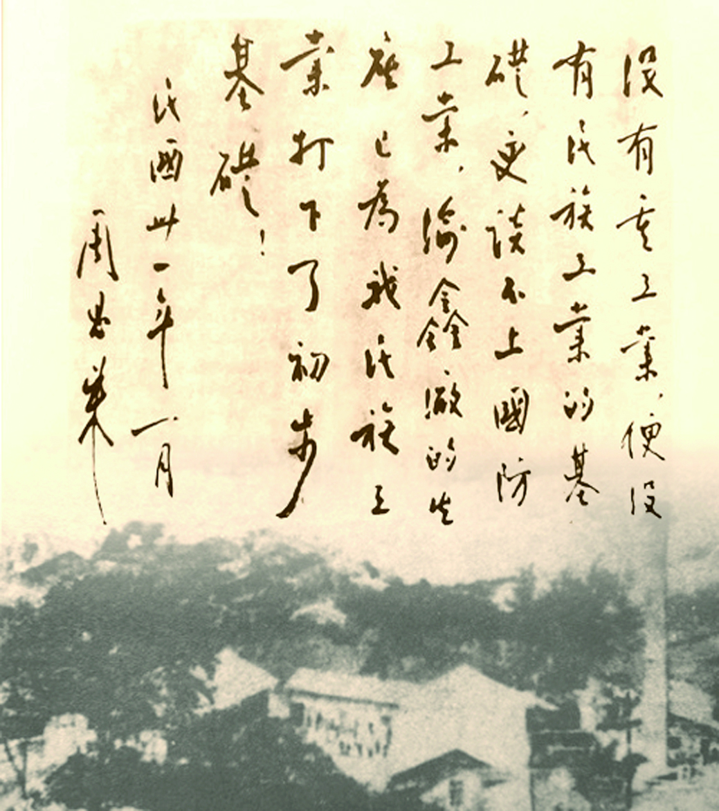 闭幕当天,中国共产党代表周恩来到参展企业渝鑫钢铁厂股份有限公司参观。在这里,他心情大好,提笔写下:渝鑫厂的生产已为我民族工业打下了初步基础。
