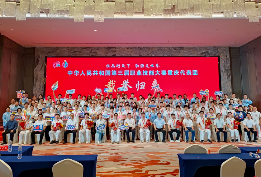 第三届全国技能大赛中,重庆技能健儿们与来自全国的技能高手过招,比匠技、比匠心,突破重重考验,最终取得7金4银1铜56优胜的历史最好成绩,1名选手获重庆代表团最佳选手奖,1名选手获西部技能之星,重庆金牌数位居全国第五、西部第一,重庆代表团再次荣获“突出贡献奖”。