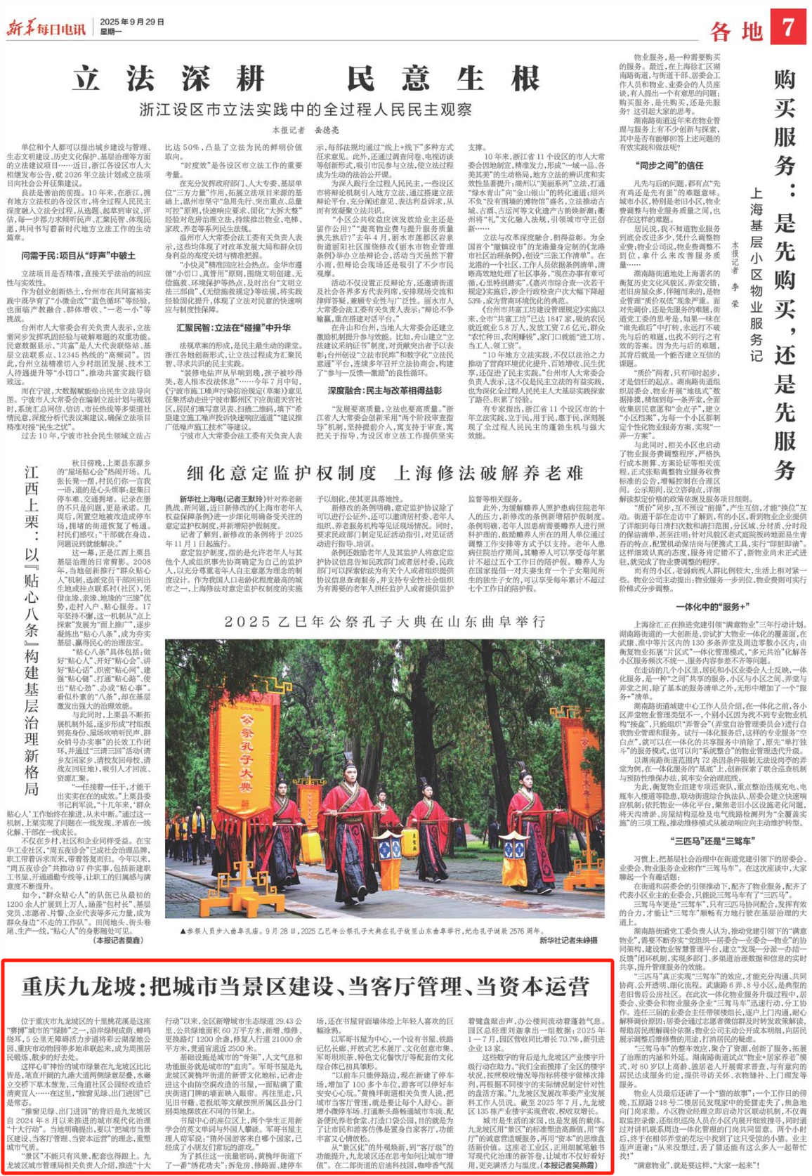 “推窗见绿、出门进园”的背后是九龙坡区自2024年8月以来推进的城市现代化治理“十大行动”。当地明确提出,要以“把城市当景区建设、当客厅管理、当资本运营”的理念,重塑城市气质。