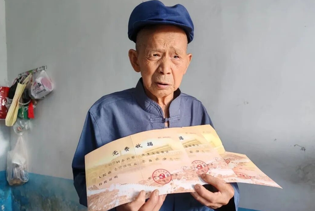 一位家住农村、收入微薄的80多岁老党员,在2019年至2024年期间,自愿交纳大额党费达1万元,他以这种形式诠释一名党员的初心使命。近日,忠县县委组织部在党费清理过程中发现这一情况并派人实地走访,涂井乡贾古村这位89岁老党员王朝贵交纳大额党费的故事才被外界知道。