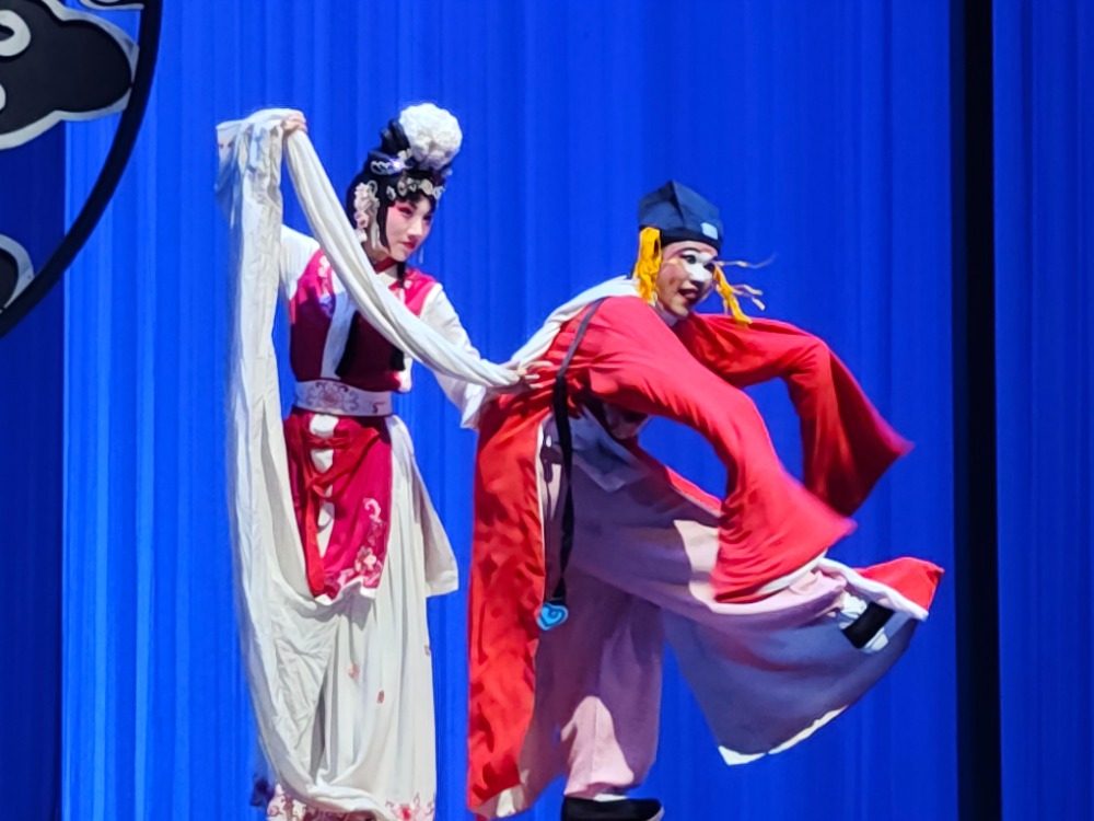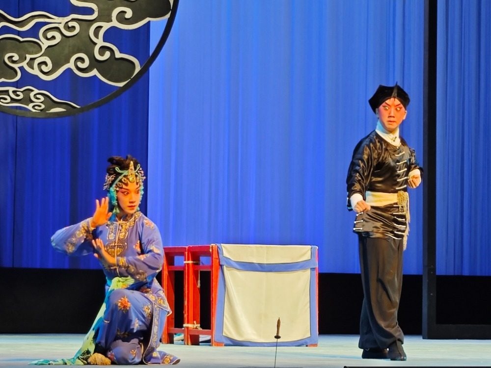 接下来,重川的青年演员唐纬、马武、余艾蓓、赵浩鑫等轮番登台,分别演绎了《打金砖》《活捉三郎》两折胡琴戏。作为传统老戏,《打金砖》以吃功费力、唱做繁难而出名,剧中刘秀的扮演者唐纬展现出众多高难度技巧,传神演绎出人物的内心,令人印象深刻。《活捉三郎》尤其让观众拍手叫好,余艾蓓、赵浩鑫这对搭档中互为红花绿叶,无论是阎惜姣的鬼狐步、碎步圆场、双手水袖花等,还是张文远的褶子功、水袖功等技巧都一气呵成,传递出浓郁的传统川剧味道。