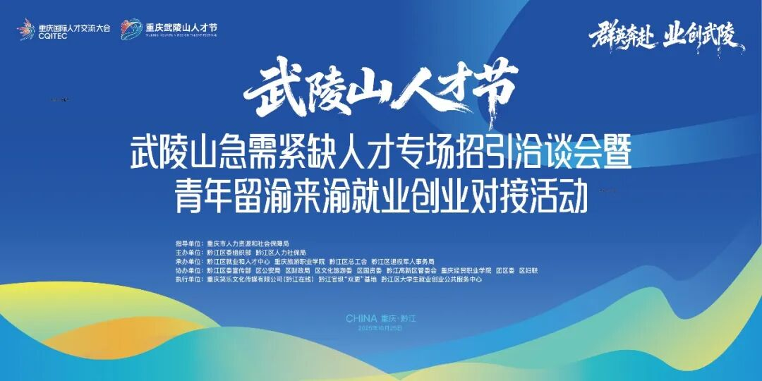 记者从首届武陵山人才节筹委会获悉,以“群英奔赴·业创武陵”为主题的“武陵山急需紧缺人才专场招引洽谈会暨青年留渝来渝就业创业对接活动”,将于10月25日在重庆旅游职业学院举行。