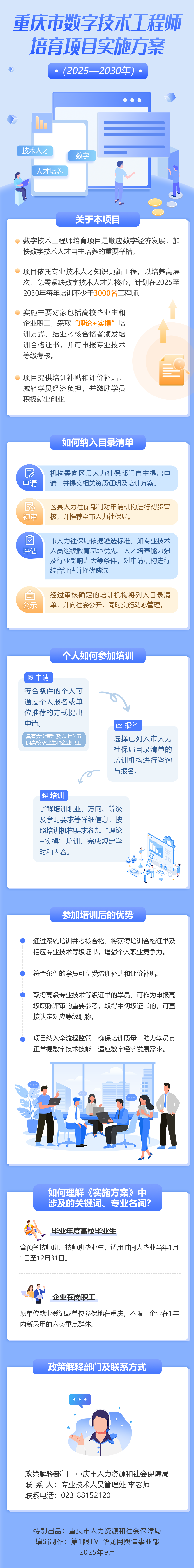 近日,重庆市人力社保局印发《重庆市数字技术工程师培育项目实施方案(2025—2030年)》(以下简称《实施方案》),依托数字技术工程师培育项目,以工程技术人才能力建设为核心,以培养高层次、急需紧缺和骨干工程技术人才为重点,力争每年培养培训数字技术工程师不少于3000名。