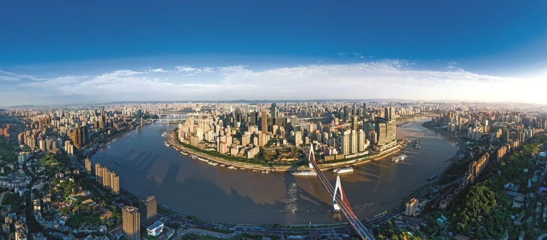 万里长江从青藏高原奔腾而下,与嘉陵江激荡相拥,勾勒出山城重庆万千气象。