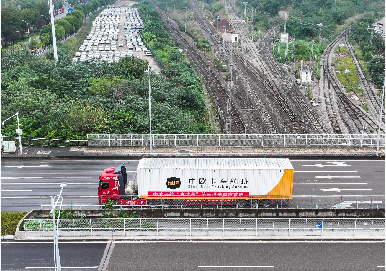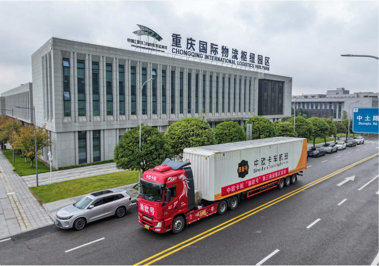 10月27日,“渝欧号”跨境公路班车从重庆市沙坪坝区国际物流枢纽园区鸣笛启程,标志着重庆成功打通中欧公路运输“第三通道”。这条全新线路跨里海连通欧盟,将重庆至欧洲的“门到门”运输时效从海运的55天压缩至25—30天。