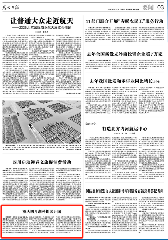 1月23日,重庆明月湖科创园在两江新区举行开园仪式。明月湖科创园旨在精准对接产业需求,有效链接高校、科研院所、企业及资本,进而服务全市“416”科技创新布局及“33618”现代制造业集群体系建设。其中,明月湖科创园总部园区由重庆大学国家卓越工程师学院和明月湖国际智能产业科创基地整合升级而成,以“提质做优一个总部园区,支持建设N个特色园区”的方式在全市推广。