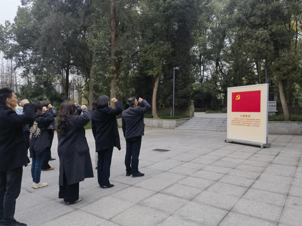 随后,全体参训人员前往静观镇王朴烈士陵园开展党性教育。陵园内松柏苍翠、庄严肃穆,全体人员脱帽肃立,依次向王朴烈士墓及其母亲金永华同志之墓敬献鲜花,深情寄托对革命先烈的无限哀思。在烈士墓前,全体党员面向党旗高举右拳,重温入党誓词。全体参训人员认真聆听王朴烈士的生平事迹,驻足参观史料图片与实物展品,真切感受革命先辈为理想信念不畏牺牲的斗争精神,接受了一次深刻的革命传统教育和党性教育。