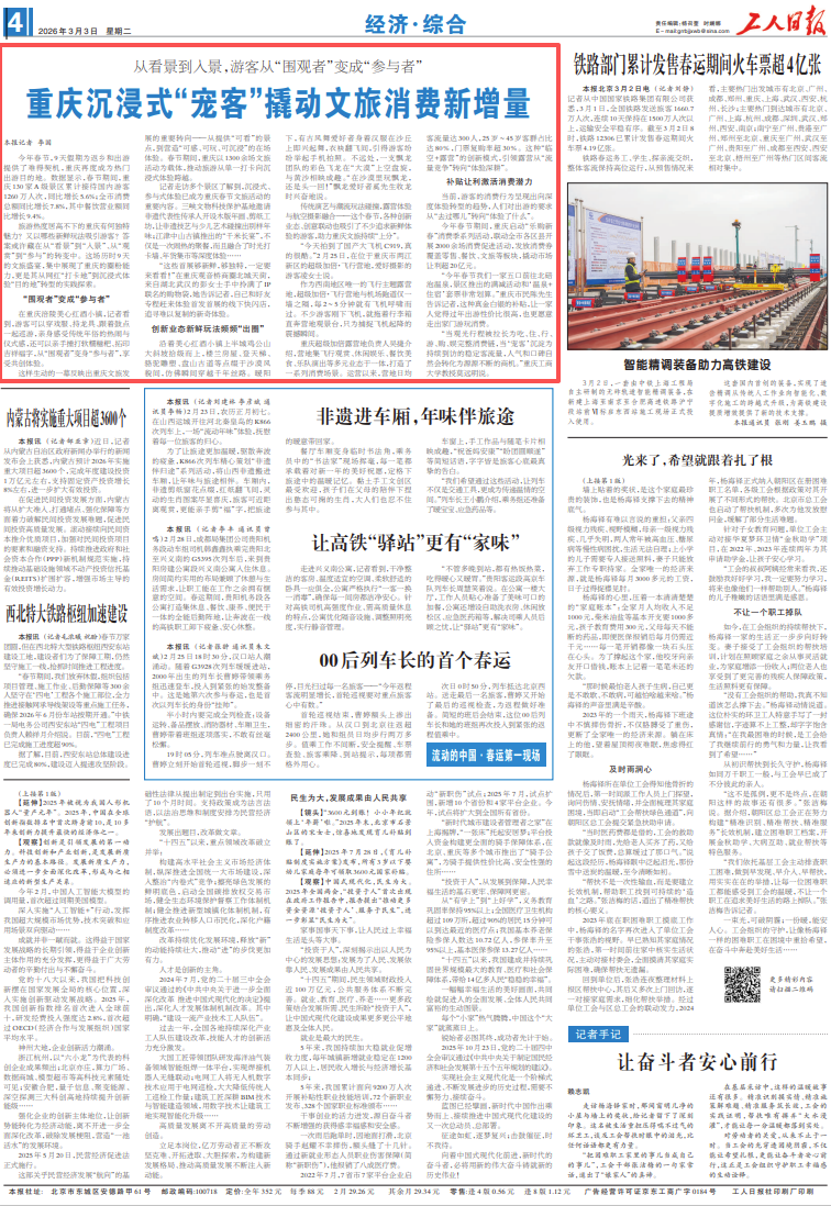 “当观光行程被拉长为吃、住、行、游、购、娱完整消费链,当‘宠客’沉淀为持续到访的稳定客流量,人气和口碑自然会转化为源源不断的商机。”重庆工商大学教授莫远明说。