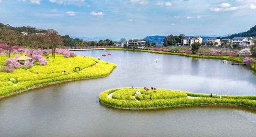 重庆市巴南区二圣镇云林天乡景区,游客畅游在花海中,感受浪漫春日。方霞 摄