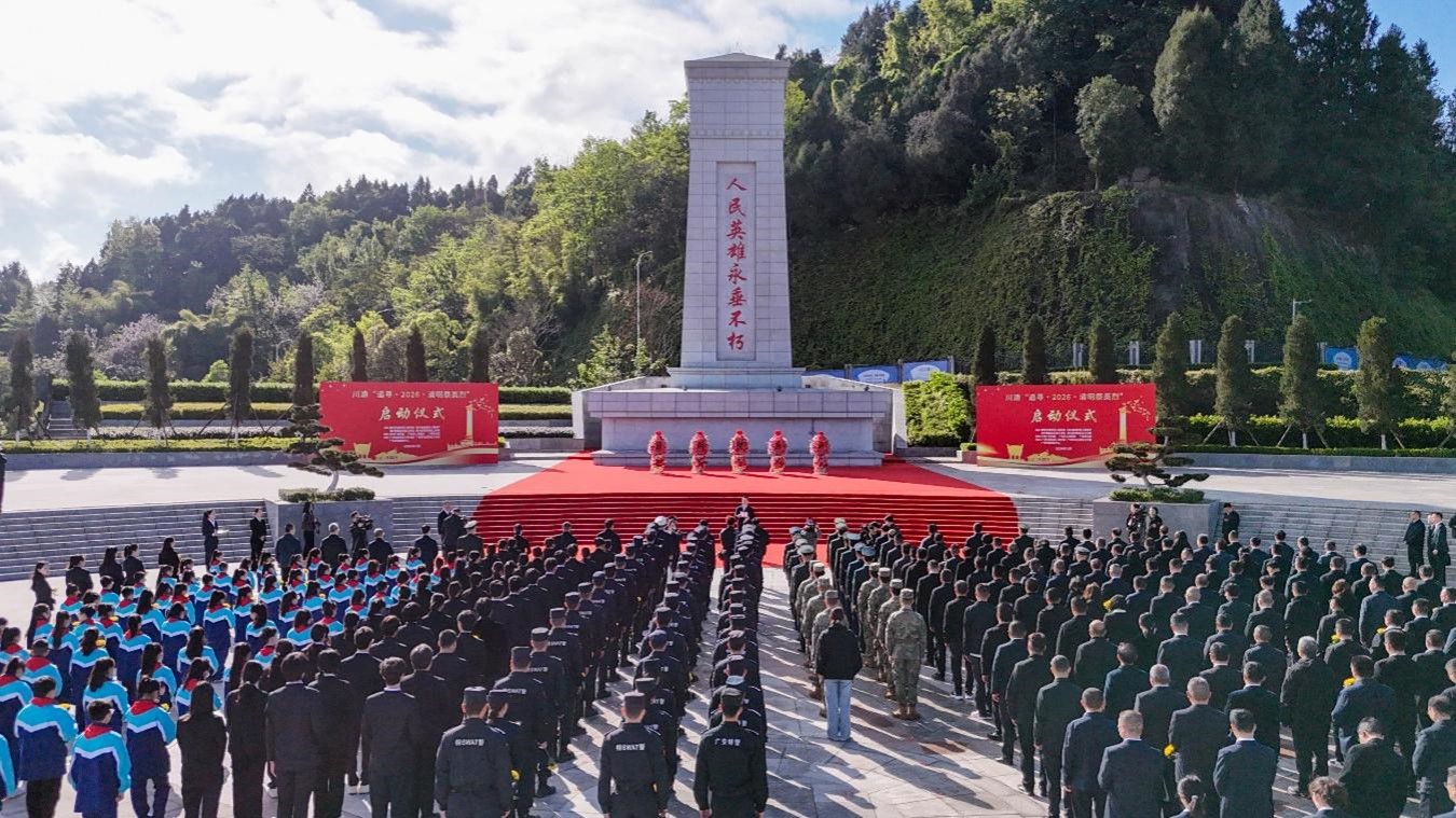 上午9时许,川渝“追寻·2026·清明祭英烈”启动仪式开始。广安市委书记张彤致辞,重庆市退役军人事务局、四川省退役军人事务厅、重庆警备区政治工作局、四川省军区政治工作局、广安市相关领导共同启动推杆画轴。随着雄浑高亢的旋律,全场齐声高唱中华人民共和国国歌,激昂歌声响彻烈士陵园。全体人员向烈士默哀,少先队员献唱《我们是共产主义接班人》,表达传承革命先辈光荣传统、追寻烈士足迹前进的远大志向。