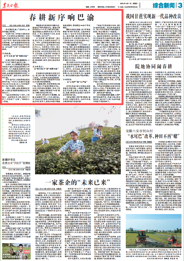 从科技赋能到组织创新,从单产提升到全链升级,巴渝大地上的这场春耕,正以实干之姿,为全年农业丰收播下希望的种子。