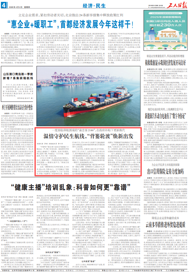 如今,新船装上了空调,配备了消防、防滑、隔热等设施,还有免费WIFI,吃水深度从0.6米增加到1米,可以扛住8级大风,远超老船标准。不仅如此,新船还提档升级了各项服务设施,但“民生属性”不改——爱心早餐依然全天候供应,志愿服务依然全时段响应。