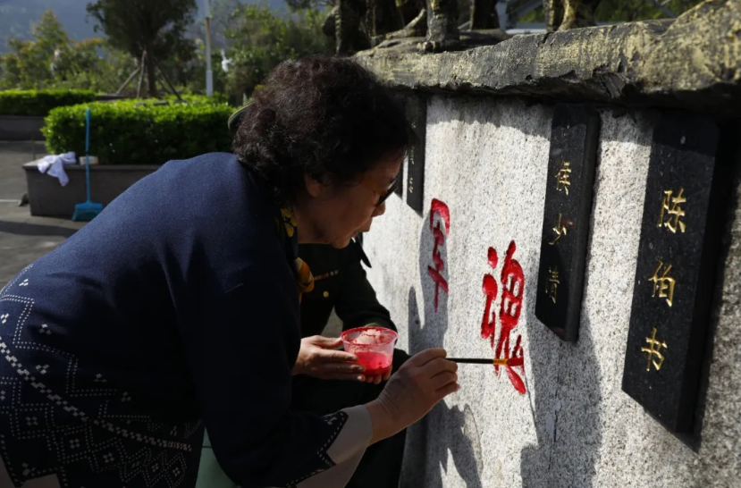 临别前,王秀清缓缓起身,在爸爸墓碑旁用双手捧起一抹泥土,小心地包进手帕,揣进贴身口袋里。“爸爸,我带您回家,带您回家。”