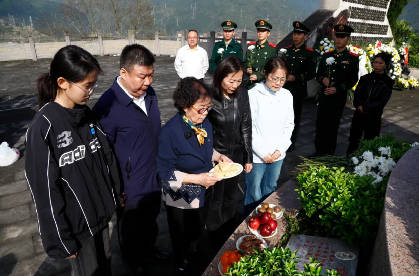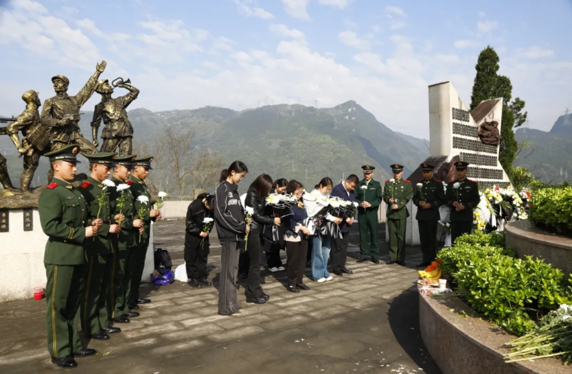 4月4日,武隆烈士陵园内,晴空万里,松柏苍翠。王秀清一行五人,在武隆区退役军人事务局工作人员、武警武隆中队官兵、红豆社区参战退役老兵彭小兵的陪伴下,缓缓走进武隆烈士陵园。