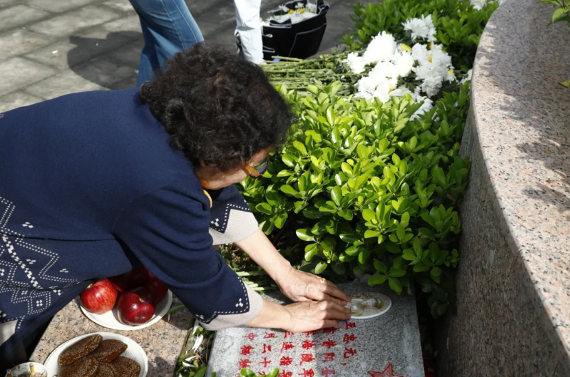 王秀清将手伸进从老家带来的布包里,掏出那张用母亲无数次抚摸过的照片制成的瓷像,小心翼翼地贴在爸爸墓碑的左上角。接着,她将老家带来的苹果、酥饼、汾酒一一摆放在墓碑前,凝视良久,又掏出手帕,一遍遍擦拭着墓碑上的名字,“爸爸,您安息吧。妈妈在那边等着您,你们终于能团聚了。”