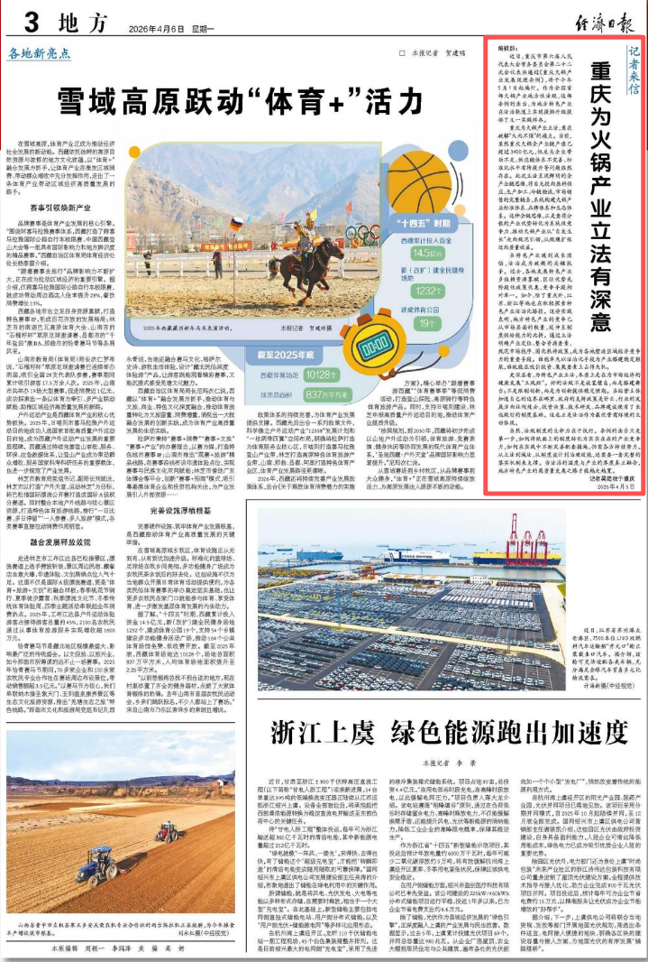 近日,重庆市第六届人民代表大会常务委员会第二十二次会议表决通过《重庆火锅产业发展促进条例》,将于今年5月1日起施行。作为全国首部火锅产业地方性法规,这部条例的出台,为地方特色产业在法治轨道上实现提档升级提供了又一实践样本。