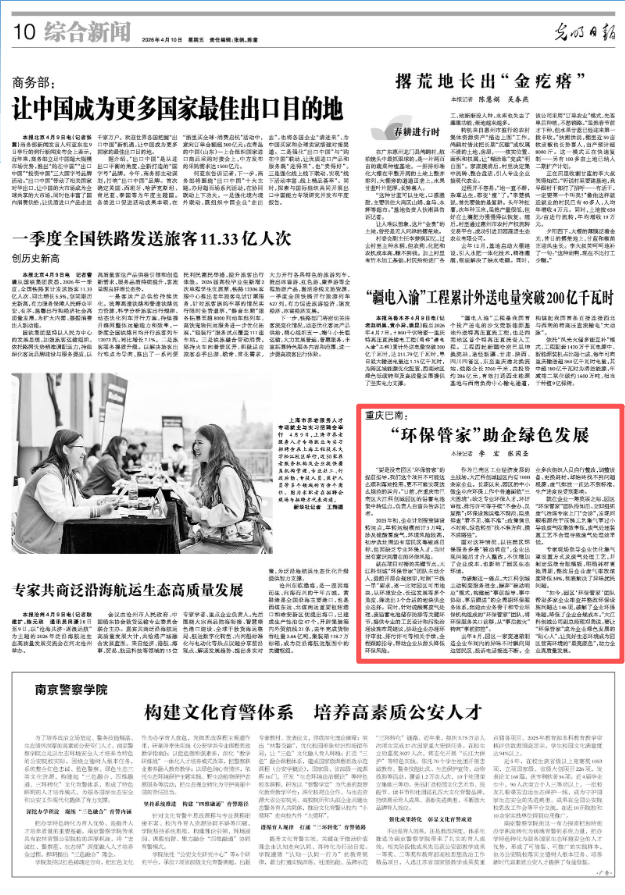 “如今,园区‘环保管家’团队帮助多家企业排查并整改环保设施问题达146项,破解了企业环保难题,降低了企业合规成本。”大江科创城公司副总经理郑勇说,要让“环保管家”成为企业绿色发展的“贴心人”,让良好生态环境成为园区营商环境的“最亮底色”,助力企业高质量发展。