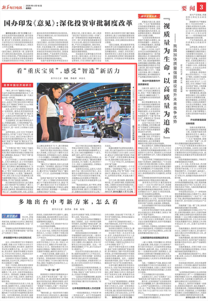 这样的变化,正在2026年的春天加速发生。今年是“十五五”开局之年,春节后首个工作日,重庆召开奋力谱写中国式现代化重庆篇章推进大会。而这些兼具“质感”和“智感”的“重庆宝贝”们,正是重庆发力一季度颇具辨识度的注脚之一。