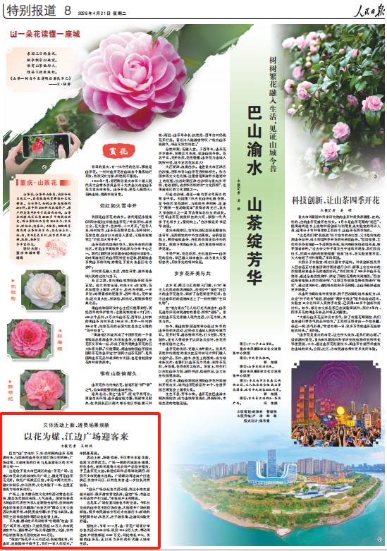 这是位于重庆市巴南区的山·茶花广场,这座以市花命名的城市休闲广场上,随处可见山茶花元素。依托广场滨江区位、市花IP两大优势,融文体娱乐、休闲消费、文化体验于一体,这里正在成为城市新地标。