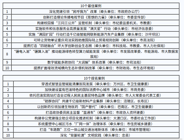 2025年度重庆市改革发展最佳实践案例名单