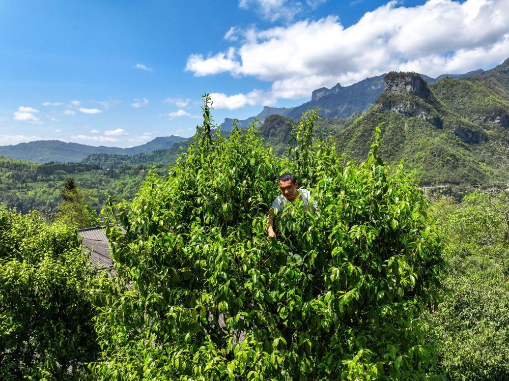 蜂蜜甜、茶叶香,金佛山的大树茶也是一个特色种质资源。4月中旬,金佛山南麓的德隆镇茶树村迎来大树茶采摘旺季。这里是金佛山大树茶核心产区,留存古树茶19000余株,其中还有一株树龄2700多年的大树茶“鼻祖”。“当地百姓自古就喜欢喝用大树茶熬制的油茶,喝了提神抗寒、干活有劲儿。”德隆镇党委书记王兵介绍。