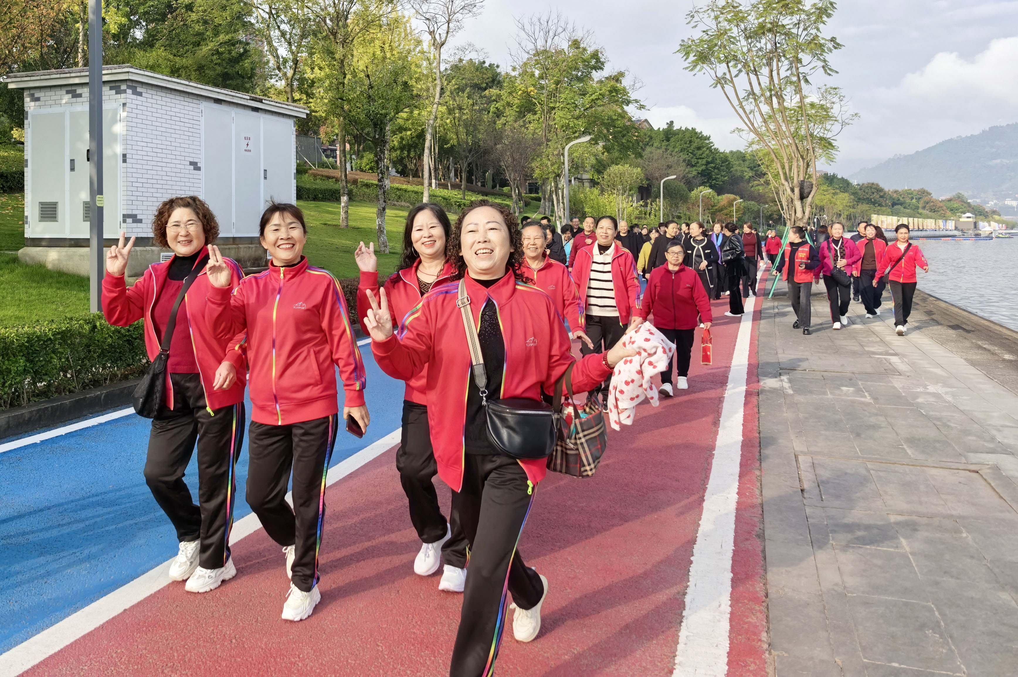 文成社区充分考虑老年人的身体特点,多次实地勘察路线,最终选定风景秀丽的沿汉丰湖跑道1.5公里环形步道作为活动路线,全程平坦无陡坡,沿途设置3个补给点,配备温水、急救包及血压测量设备,邀请2名医生随队保障。