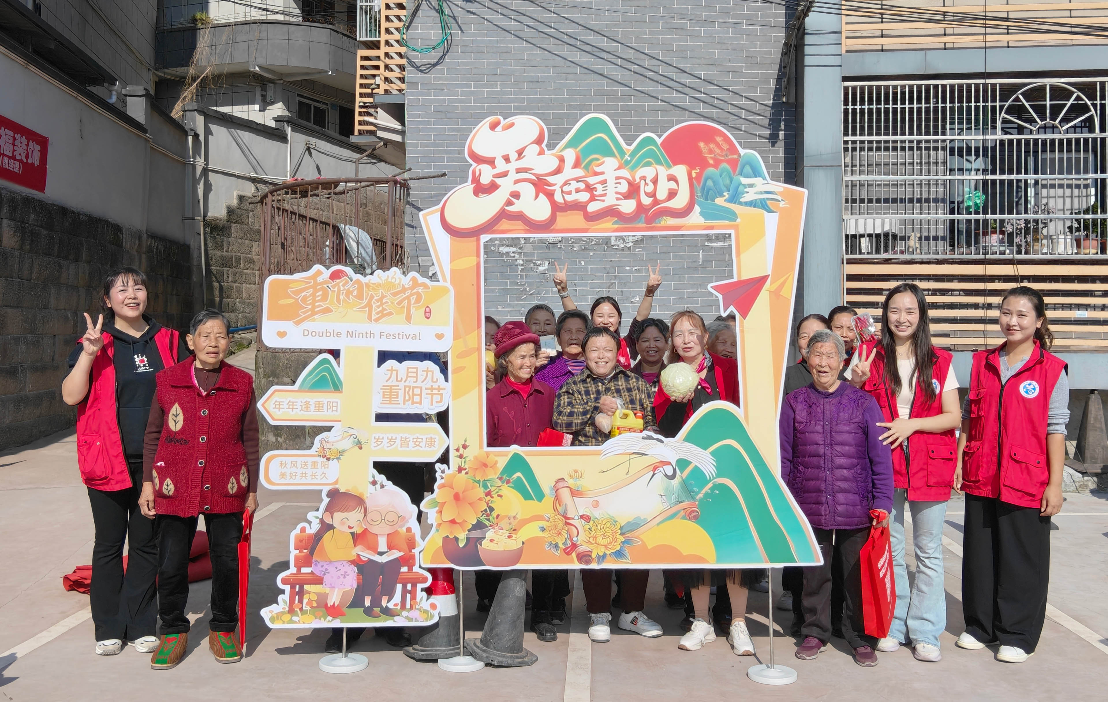 最后,老人们在重阳主题合影区展示新发型,手捧套圈奖品,把灿烂的笑容留在了“爱在重阳”相框里。