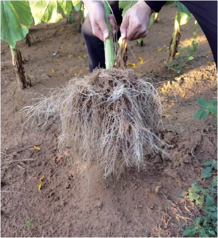 多个基地的种植情况表明,作物灌溉量比周边农地或农牧业生产用水限额低20%以上。“若是在沙漠地区种植耐旱植物,或在若尔盖草原沙化区和拉萨市郊沙化带等降雨量正常的地区,改造后则只需在播种时浇水,后期无需灌溉。”易志坚说,这是因为土壤化后,土壤形成“上紧下松”的“倒装结构”,植物的根系可以自由生长,从而长得又多又长又细密,这样植物可以在更不利的水分或者养分条件下,反而吸收利用得更好。而且土壤的适用性也更加广泛,可以针对不同的作物来调节土壤性能(比如有的作物喜欢松散的土壤,有的喜欢结实的),实现不同作物土壤类型的定制化,从而精准添加土壤养分。相比之下,自然土壤则是上松下紧的结构,上面是腐殖层或者耕作层,下面是泥土,越往下越紧,根系不可能扎得很深,或者长得很茂密。因此,沙漠土壤化的作物产量也普遍比自然土壤提高30%以上,部分作物产量甚至可提高两倍以上。