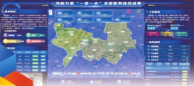 为做好“一老一小”关爱服务,砚台镇创新打造了鸿砚万家“一老一小”关爱服务综合场景,通过“三色管理、智慧监测、服务清单、特色活动”四大举措,构建起关爱“一老一小”全链条闭环服务体系。通过精准摸排,为166名重点关注儿童、317名独居老人建立“一人一档”,按风险等级实行“红、黄、绿”三色管理。