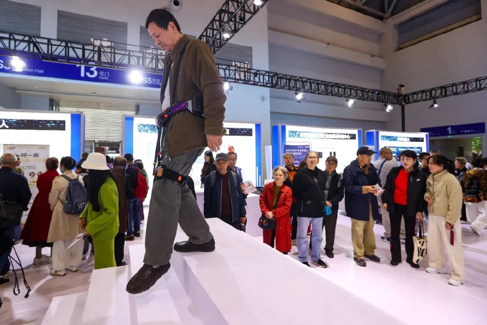 比如,此次老博会上,科技与养老的深度融合,成为一道亮眼的风景线。从康复护理机器人、辅助行走机器人、上肢康复训练机器人等智能机器人,到使用AI识别技术的“防摔马甲”;从导盲机器狗到全自动洗澡机,再到疾病预警智能手表……多款养老“黑科技”产品为养老服务带来全新体验。