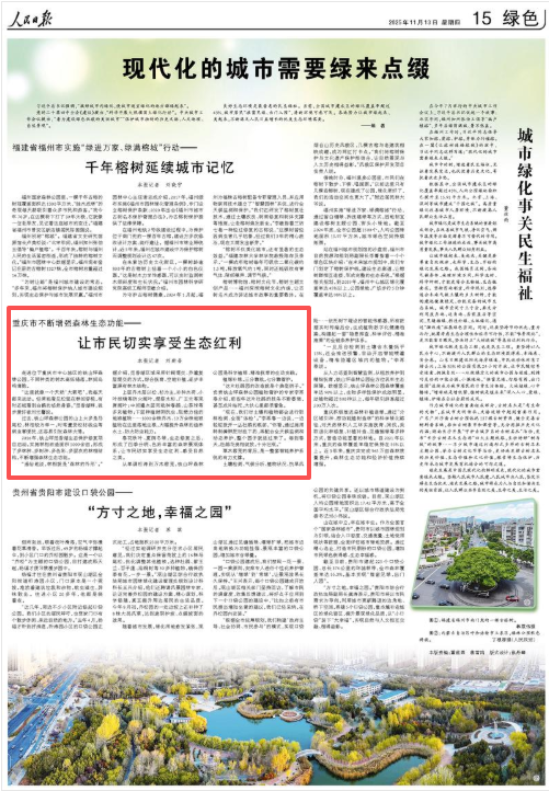 重庆积极推进森林补植造绿,通过“分区域引种、按功能植树造林”的科学绿化路径,对天然林和人工林实施抚育、间伐,采取退化林修复、补植补造、见缝插绿等多种方式,营造功能显著的林地。自2021年以来,重庆的森林覆盖率稳定保持在55%以上。近3年来,重庆共完成965万亩森林质量提升,森林生态功能和经济价值持续增强。