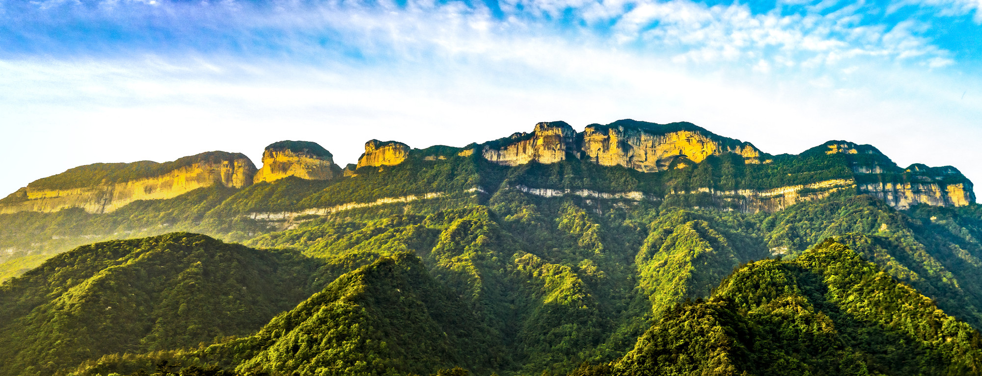 多年前,金佛山尚未通路,陈渊背着干粮钻进密林。巨大的翠绿山体上,蜿蜒盘旋着高数百米、绵延数十公里的银白色陡崖。夏秋晚晴的傍晚,夕阳把陡崖染成金色,南川古八景之首的“金佛晚霞”便出现在他眼前。
