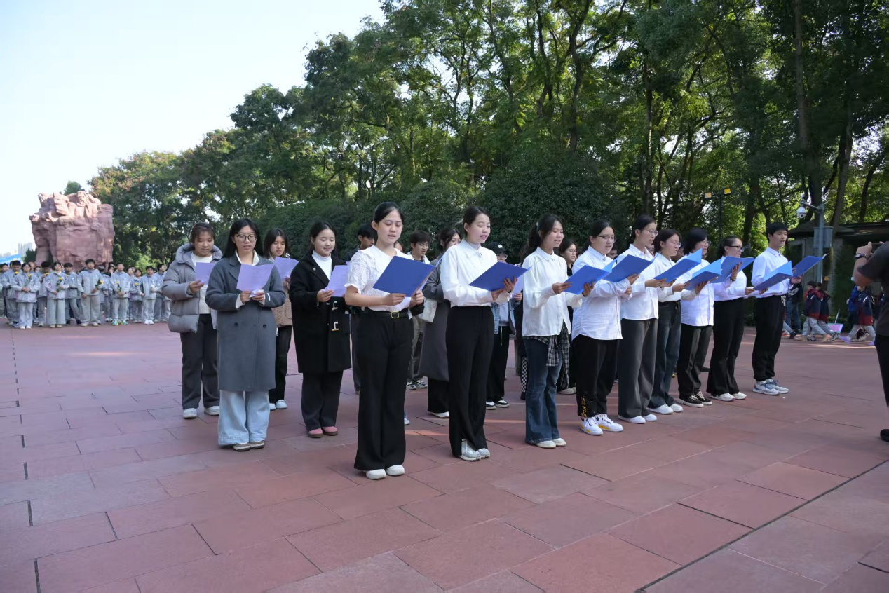 师生党员们来到歌乐山烈士陵园祭奠英雄。在烈士墓前,全体师生肃立默哀,敬献手工折制的纸花。大家齐声朗诵了何敬平烈士的《把牢底坐穿》、陈然烈士的《我的自白书》等红色革命诗篇,以铿锵之声表达对先烈的深切缅怀。