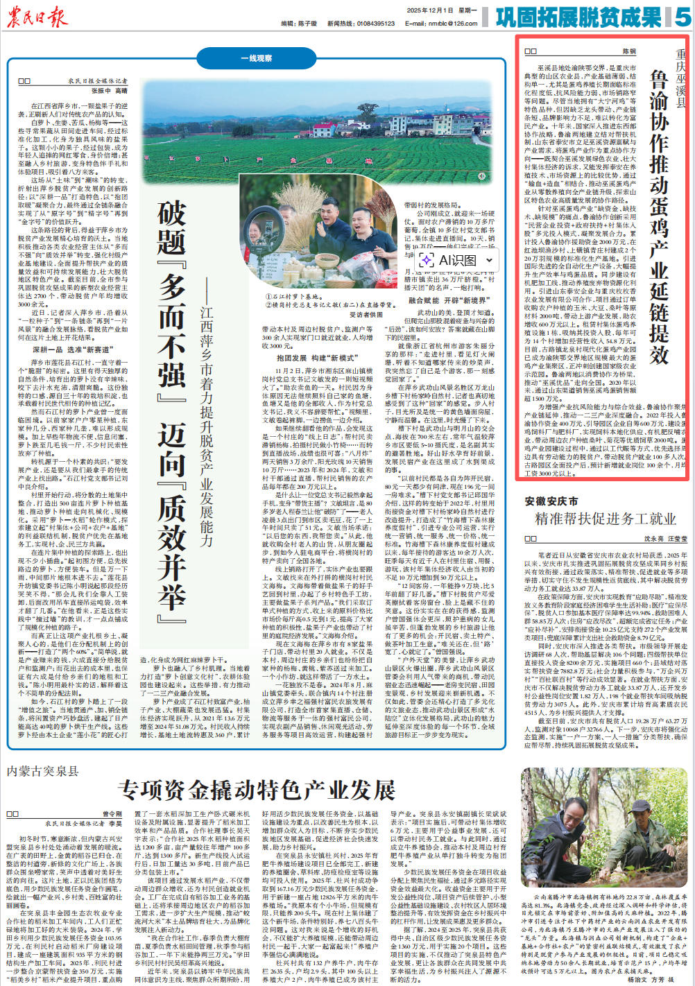 巫溪县地处渝陕鄂交界,是重庆市典型的山区农业县,产业基础薄弱、结构单一,尤其是蛋鸡养殖长期面临标准化程度低、抗风险能力弱、市场销路窄等问题。尽管当地拥有“大宁河鸡”等特色品种,但因缺乏龙头带动、产业链条短、品牌影响力不足,难以转化为富民产业。十年来,国家深入推进东西部协作战略,鲁渝两地建立结对帮扶机制,山东省泰安市立足巫溪资源禀赋与产业需求,将蛋鸡产业作为重点协作方向——既契合巫溪发展绿色农业、壮大村集体经济的诉求,又能发挥泰安在养殖技术、市场资源上的比较优势,通过“输血+造血”相结合,推动巫溪蛋鸡产业从零散养殖向全产业链升级,探索山区特色农业高质量发展的协作路径。
