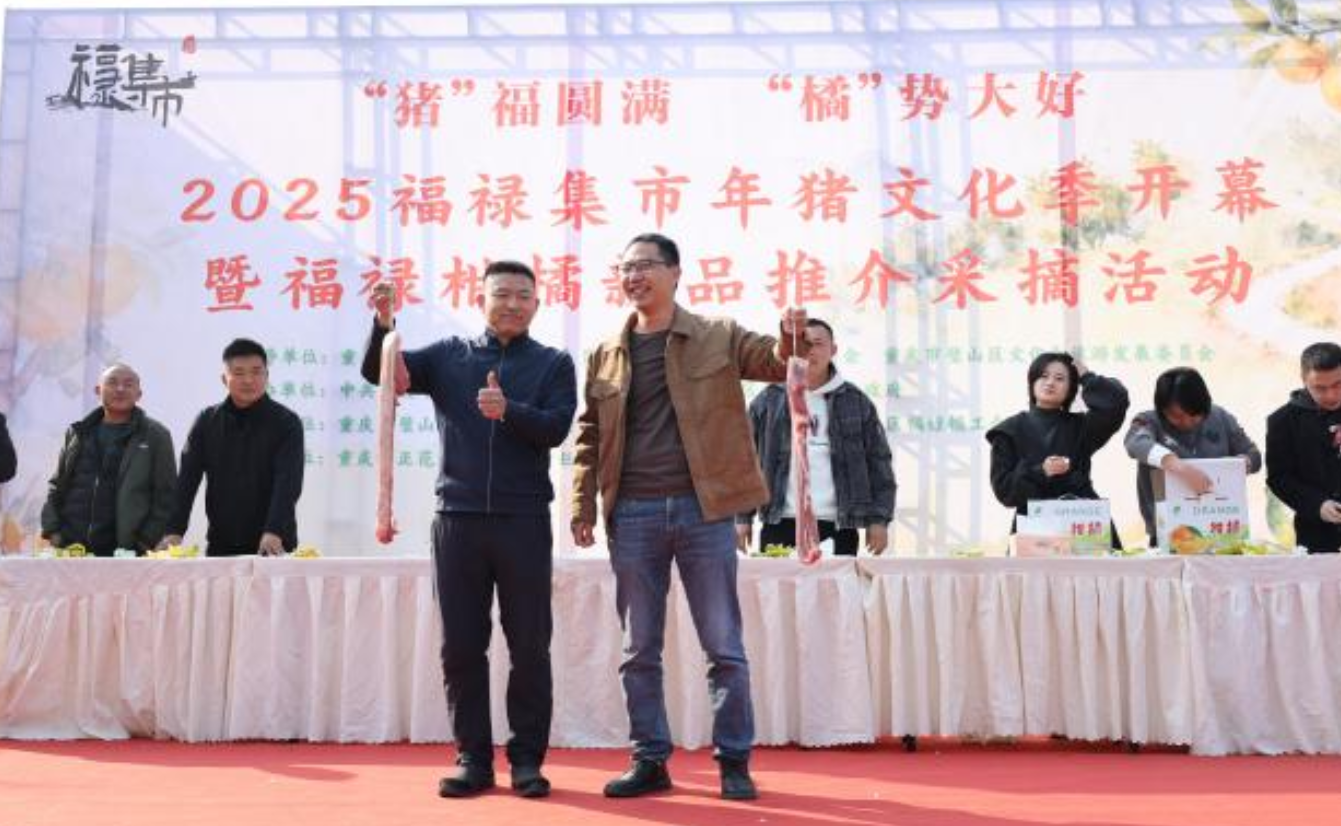 11月28日,重庆市璧山区福禄镇在斑竹村划船湾启动“‘猪’福圆满・‘橘’势大好”2025年福禄集市年猪文化季开幕暨福禄柑橘新品推介采摘活动。这场以“党建+农文旅”为核心模式的乡村盛宴,凭借党组织引领、产业融合驱动、文化赋能升级的三重发力,让柑橘成为撬动乡村振兴的“黄金果”,活动首日便吸引游客数千人次,带动柑橘及衍生产品销售额突破10万元,有效带动周边农户直接受益。