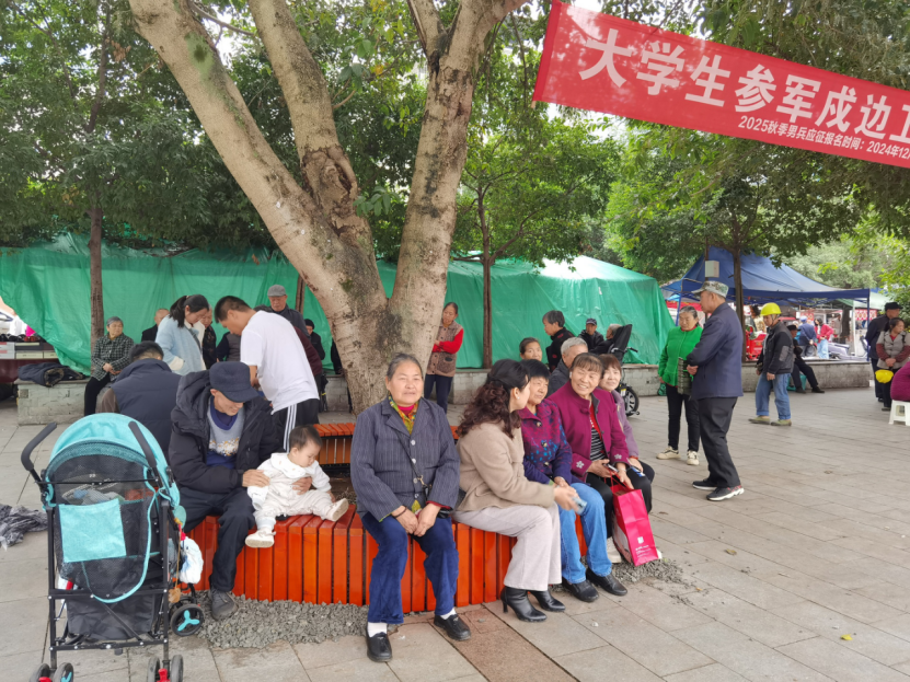 9点,谢方庆抵达广场时,两棵枝繁叶茂的黄桷树下早已自发聚集了20多位高龄居民,他们脸上洋溢着笑容围拢在一起,等待一场特别的“答谢会”。