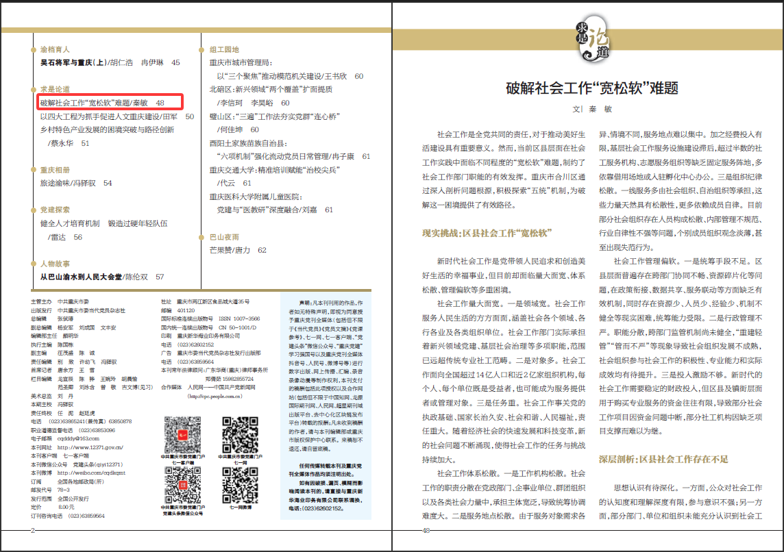 做好社会工作是全党共同责任,对于推动美好生活建设具有重要意义。然而,当前区县层面在社会工作实践中面临不同程度的“宽松软”难题,制约了社会工作部门职能的有效发挥。重庆市合川区通过深入剖析问题根源,积极探索“五统”机制,为破解这一困境提供了有效路径。