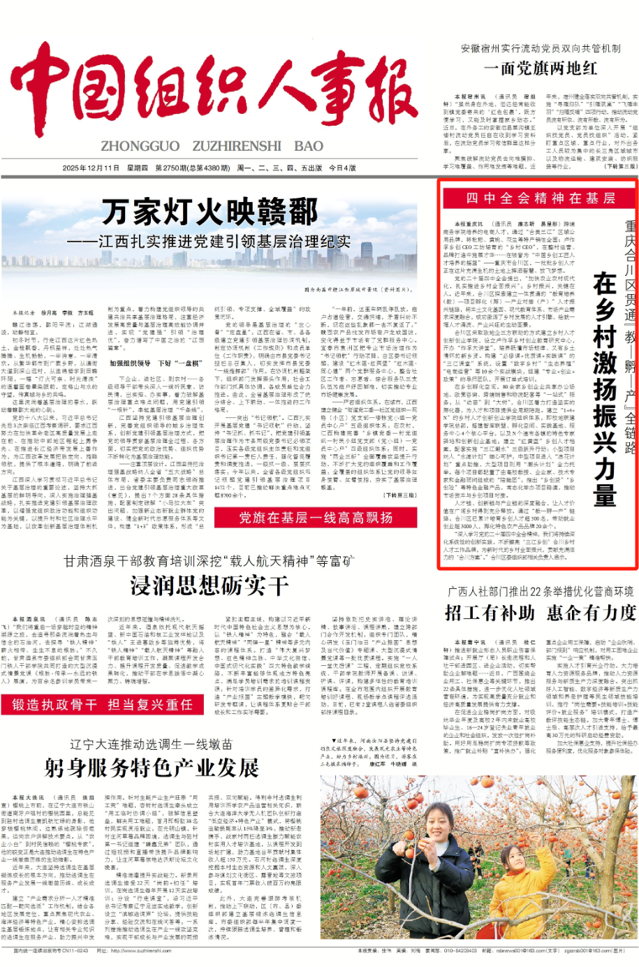 “深入学习党的二十届四中全会精神,我们将持续深化系统性的创新实践,不断擦亮‘三江乡创’合川乡村人才工作品牌,为新时代的乡村全面振兴,贡献充满活力的‘合川方案’。”合川区委组织部相关负责人表示。