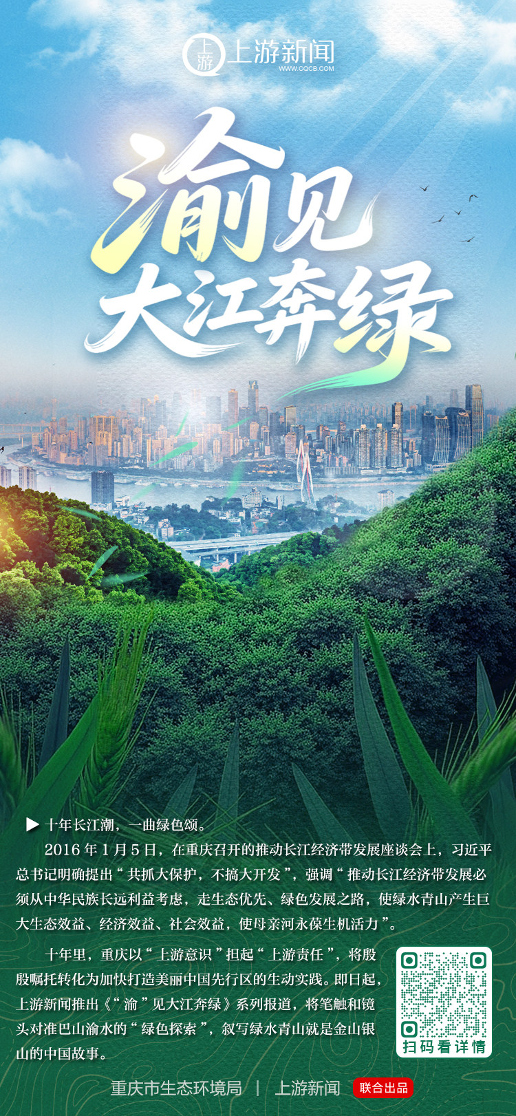即日起,上游新闻推出《“渝”见大江奔绿》系列报道,派出多路记者沿江而行,将笔触和镜头对准巴山渝水的“绿色探索”,叙写绿水青山就是金山银山的中国故事。