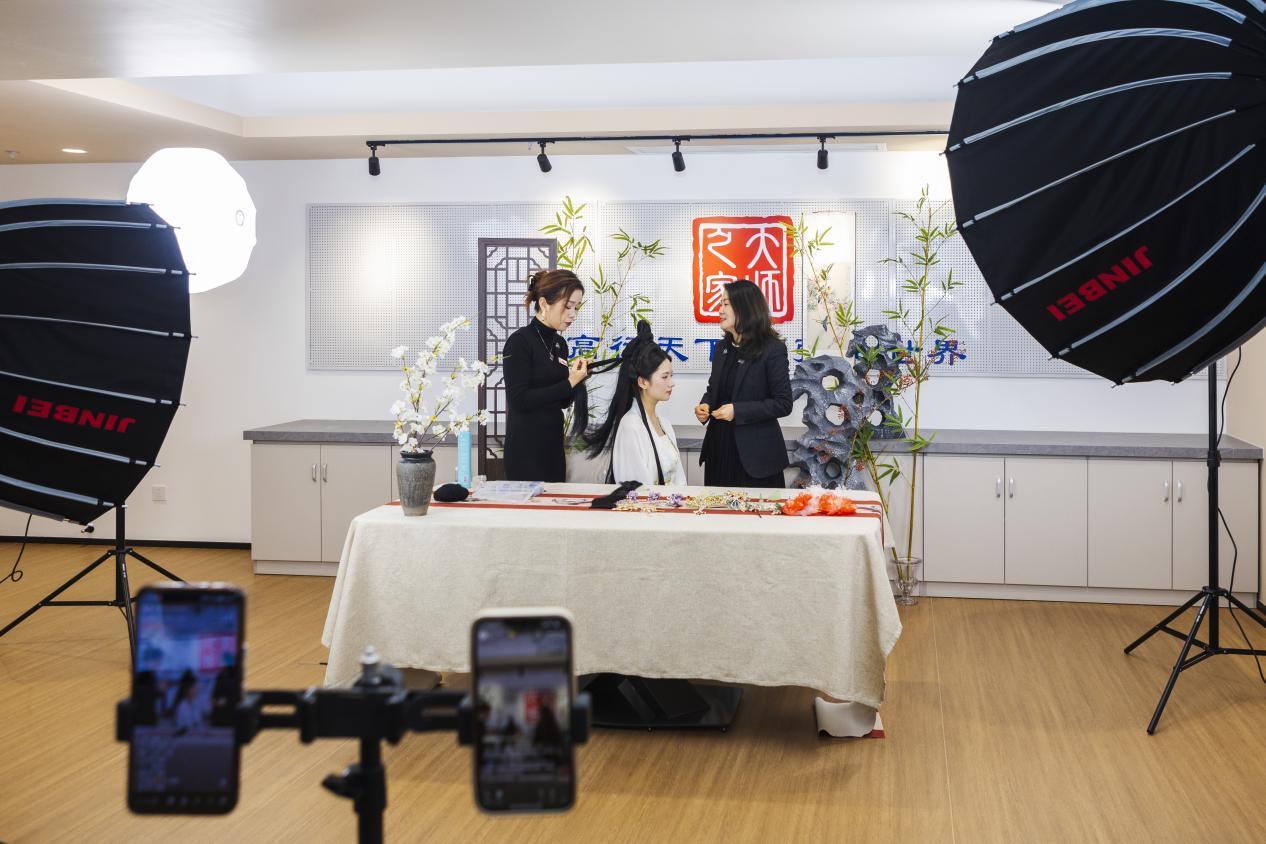 美容大师宗君从刘海形态、假发堆积、发冠选择等方面,现场演绎真假发结合的古风发型打造全过程,细致的讲解、温柔的互动,让观众沉浸式感受古风美学的魅力。