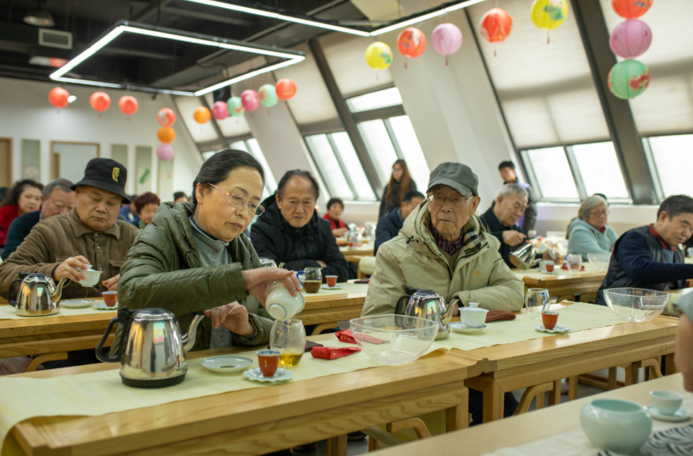 与此同时,书法体验区墨香四溢,志愿者早已备好笔墨纸砚,老同志挥毫写下“康养延年”等作品;茶艺区内,茶艺师演示着冲泡技艺,温润的茶汤驱散了深冬寒意。