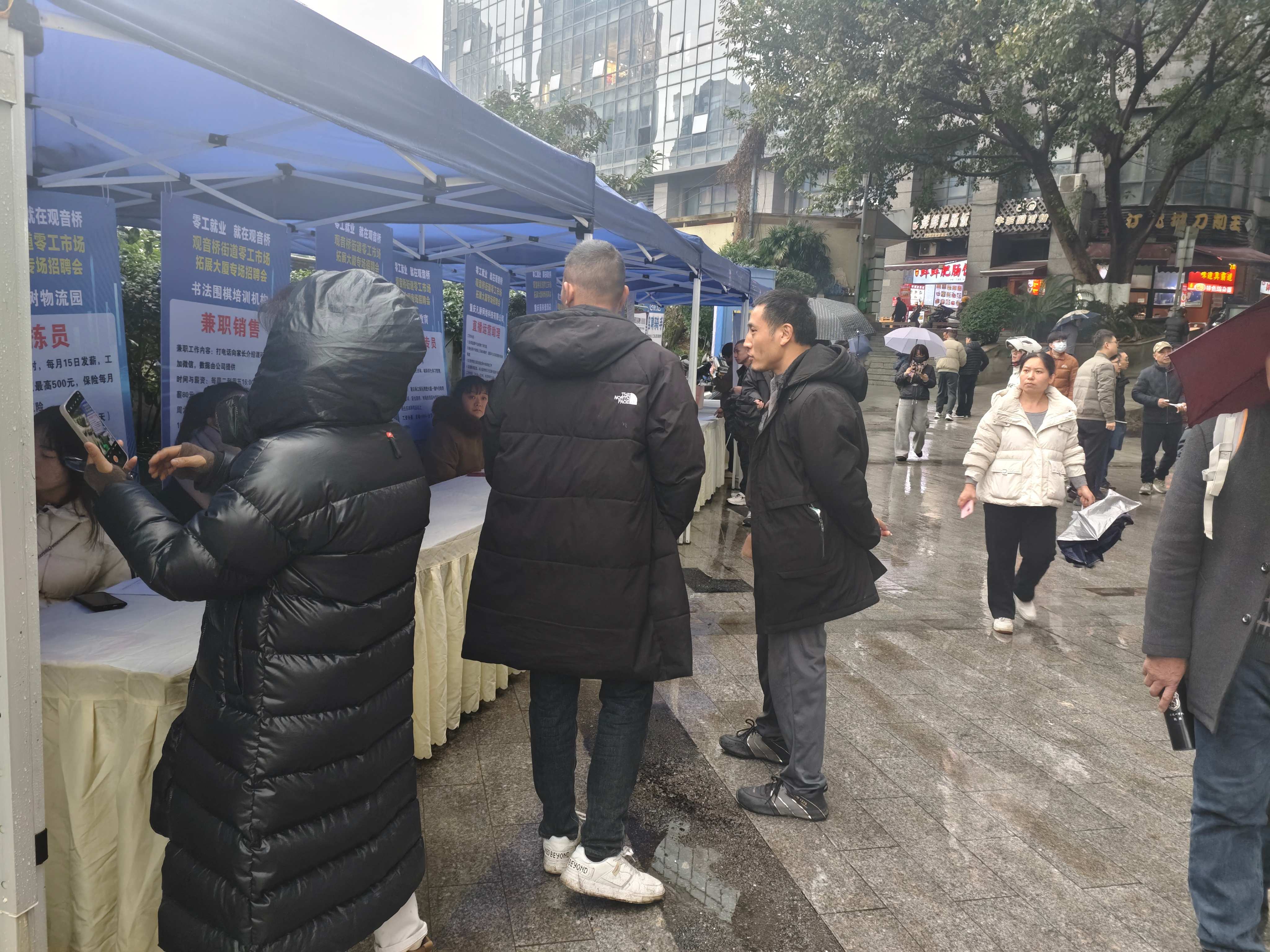 活动现场划分为四大核心服务板块,为不同需求的群体提供精准服务。在“暖‘新’行动,礼送安康”专区,工作人员向早早到场的骑手、快递员等送上装有牛奶、馒头等食品的“元旦暖新礼包”,用一份份热气腾腾的礼物传递节日问候。“职引新程,岗汇两江”板块由区人社局牵头,组织16家辖区企业开展专场招聘,涵盖物流、零售、服务等多个领域,累计发布岗位信息30个,并设有政策咨询台提供权威解答。为适应当前就业形态,活动特设“零工速聘,‘薪’动现场”环节,邀请淘宝闪购、肯德基等平台站点负责人现场坐镇,开设快速面试通道,重点推介即时配送等门槛低、入职快的灵活就业岗位,实现求职者与用工方的即时对接。