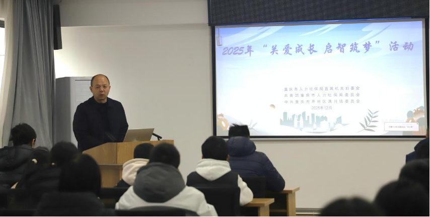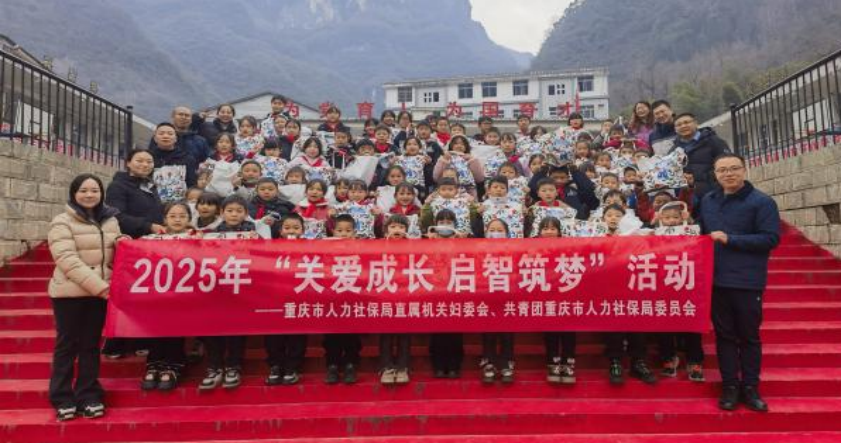 岁末冬寒,情暖山乡。为深入贯彻落实习近平总书记关于少年儿童和少先队工作的重要论述,积极响应重庆市委关于农村留守儿童和家庭困难青少年关爱工作的决策部署,切实履行对口帮扶职责,2025年12月30日,重庆市人力社保局妇委会、局团委,在开州区满月镇举办“关爱成长 启智筑梦”主题活动。活动以物资帮扶、技能服务、精神赋能相结合的方式,为当地少年儿童送去冬日关怀与成长力量,全方位助力乡村振兴事业发展。