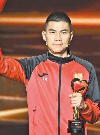 颁奖词:绿茵场上,汗浸战袍,你仍是那个追风少年。千日坚守,一夕梦圆,有你的青春不老。为一座城而战,为心中光而拼,你彰显英雄之城的豪迈——拼搏敢争先。