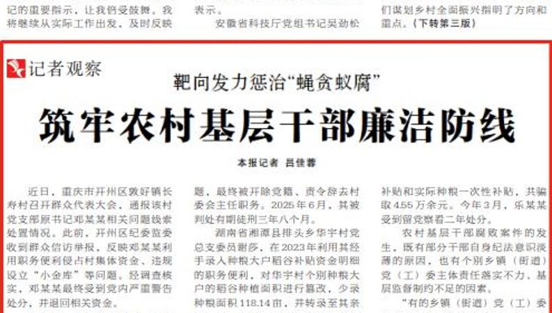 重庆等地靶向发力惩治“蝇贪蚁腐”