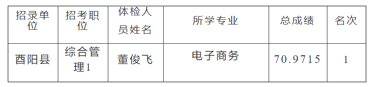 酉阳自治县2024年从优秀村(社区)干部中考试录用公务员参加体检人员公布表