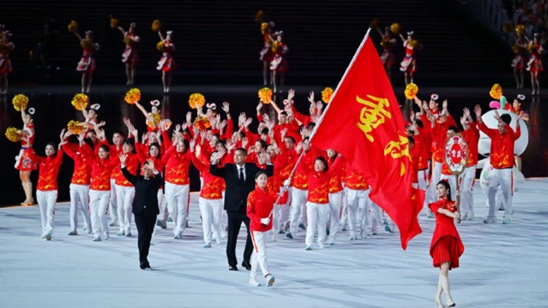 丁欣怡担任旗手 重庆市体育代表团在开幕式上亮相