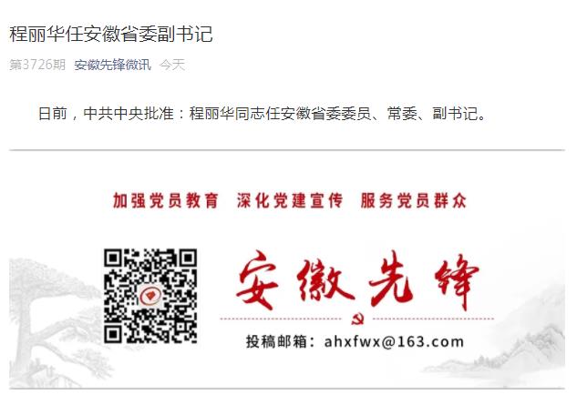 程丽华任安徽省委副书记